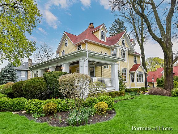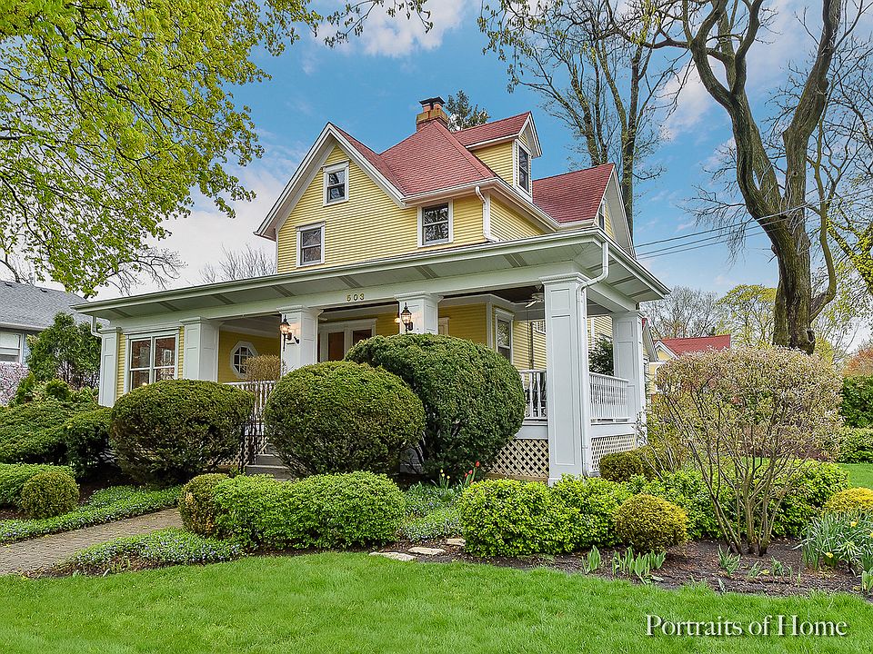 Quintessential farmhouse located in the heart of downtown Wheaton. Walk to everything - train, Prairie Path, Longfellow Elementary, College, French market, parks & all that the vibrant downtown has to offer. Expansive addition in 2007 included adding incredible Drury kitchen, heated sunroom, large walk-in pantry (w/utility sink & laundry hookup) & new deep pour basement - cedar siding & roofing were replaced at the same time. Newer windows, HVAC (2017), Hot Water Heater (2018). Spacious chefs kitchen with Wolf stovetop, oven & microwave, Dacor warming drawer, Monogram professional refrigerator, two huge islands, farmhouse sink & custom cabinetry. Admire your pristine, manicured yard from the extra deep wrap around porch or the cozy covered back porch. Professional landscaping / hardscape includes lawn sprinklers & paver walkways. Two car detached garage with covered porch & loads of storage. Alley access. 503 N Ellis is your next perfect home!