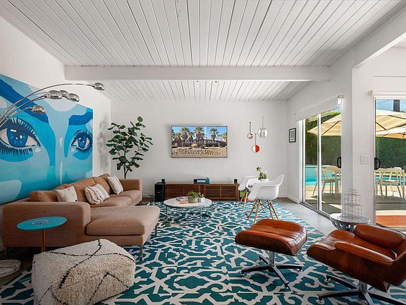 Iconic Midcentury Living in Palm Springs! Step into timeless style at this classic Meiselman-designed home, where clean midcentury lines meet effortless indoor-outdoor living. Walls of glass open to a sparkling pool and spa framed by soaring palms and dramatic western mountain views. Tall privacy hedges create a secluded resort-like setting, perfect for both relaxation and entertaining. Inside, open-concept living spaces flow seamlessly to the outdoors, showcasing the hallmarks of Meiselman architecture--post-and-beam ceilings, clerestory windows, and abundant natural light. Just minutes from downtown, this home embodies the Palm Springs lifestyle: chic, private, and made for sunshine living. No HOA and you OWN the land. At the time of listing, the Sunrise Park neighborhood is under the density cap, so short-term rental permits are available. This one is a great value, so schedule your private showing today!