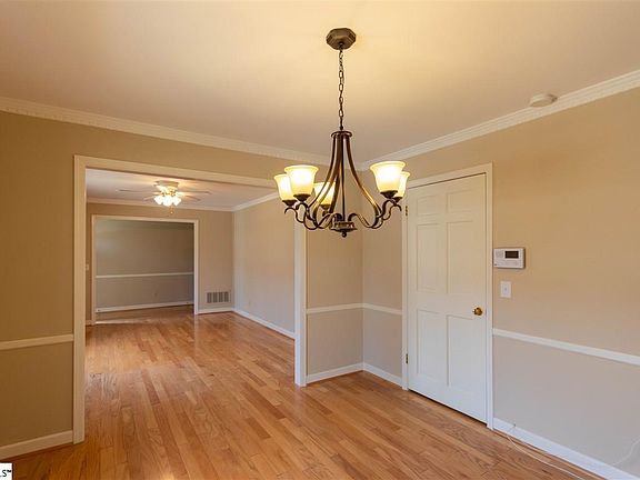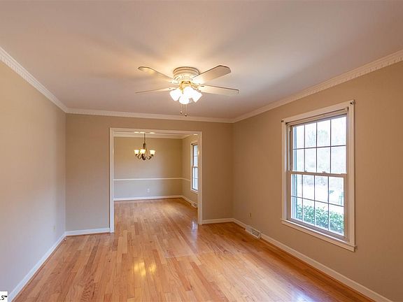 Check out this 3BR/2BA brick ranch, with no HOA, that is located within minutes to Downtown Greenville and just up the street from Cherrydale, the Swamp Rabbit Trail, Furman University, and much more! The interior has been freshly painted and hardwoods start in the foyer and flow throughout. The Formal Living & Dining Rooms flow together for easy entertaining. Each room is detailed with dentil crown molding with chair rail molding in the Dining Room. The Kitchen, which is located beyond the Dining Room, boasts a plethora of honey-toned cabinetry, granite countertop, coordinating tile backsplash and a Breakfast area with additional cabinetry. There is plenty of room for friends and family to gather in the spacious Great Room that's anchored by a gas log fireplace with floor to ceiling masonry and a convenient wet bar. The Sunroom, found at the rear of the home, has private entry, a large walk-in closet and includes the Laundry Room. The Master Suite offers a spacious closet with built-ins, lighted ceiling fan and Bath with tub/shower combination with tile surround. Two additional bedrooms are both spacious in size and feature lighted ceiling fans and ample closet space. They share a centrally located hall bath with standalone shower. You'll not only find what you are looking for inside, but outside you will find a wonderful level lot with a 2- car carport, an outbuilding and large fenced backyard.