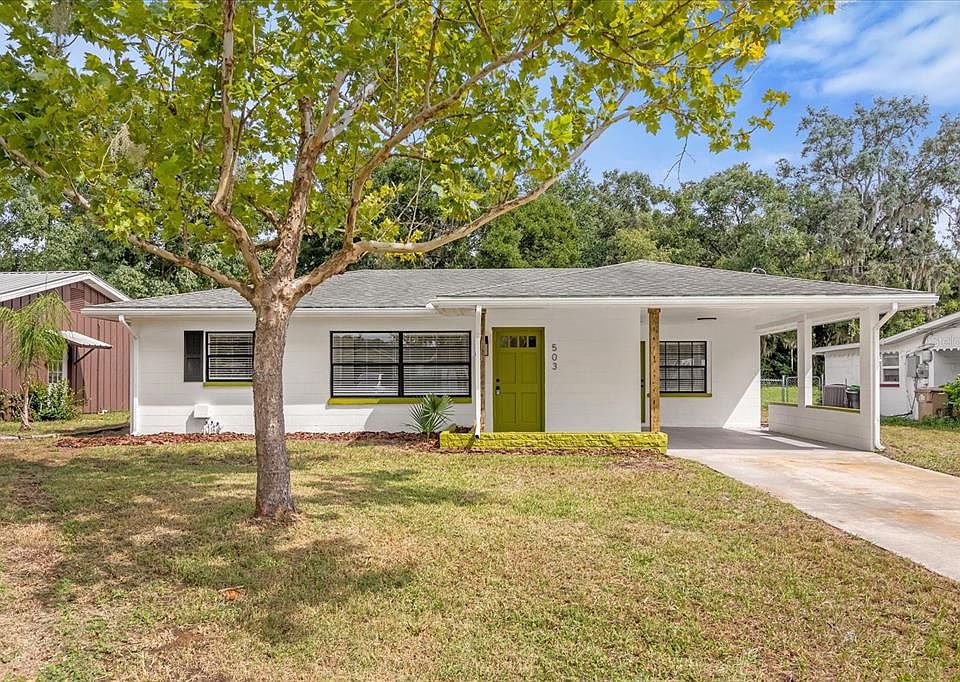 Welcome to 503 Ohio Blvd. in the Charming Town of Eustis, Florida! This Inviting and Cozy home is BURSTING with Curb Appeal, Featuring a Decorative Accent Wood Fence detail, Entryway Beams, and Pops of Charming Green accents on the exterior. Inside, the Foyer opens into a Bright Living Space with an Abundance of Natural Light streaming through the front windows and includes thoughtful Built-In details. The Kitchen, located at the rear, boasts plenty of Cabinet Space, Brand-New Appliances, and room for an Island if desired. The Dining Room is conveniently located just off the Carport. The entire home is Beautifully Updated with Luxury Vinyl Plank Flooring and Fresh Paint all with neutral colors sure to be pleasing to all tastes. The Fully Renovated Bathroom offers Modern Touches with a Stylish Shower Backsplash, New Fixtures, and a Dual-Sink Vanity with Wood Panel Detailing. Moving outdoors we step out to the Newly Screened-In Rear Patio—perfect for gathering with loved ones! Also enjoy the walkway leading to a convenient Storage Shed, ideal for your Extra Storage needs. The Large Yard provides plenty of room for outdoor fun. Enjoy a Brand Spanking NEW AC! The Septic has also just been Pumped so you can truly be at ease here. Located just minutes from the Historic and Lovely Downtown Eustis, you’ll enjoy easy access to dining, shopping, and main roads. Eustis has become one of Central Florida's most cherished little towns that seems to be straight out of a magazine and really shines during the Holidays as one of the Hotspots for Lights and Decorations as well as events. You will absolutely love living here and will quite instantly fall for the small town charm afforded to its residents. Call to schedule a viewing today and make this meticulously updated home your New Address! <iframe src="https://www.youtube.com/embed/hGP-RSKD_N0" frameborder="0" allow="accelerometer; autoplay; encrypted-media; gyroscope; picture-in-picture" width="560" height="315" allowfullscreen></iframe>