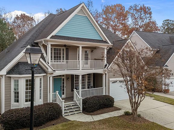 You get LAKE VIEWS and PRIVACY with this bright and airy 4 bedroom, 2.5 bathroom home in sought after Carpenter Village. First floor master and serene lake views from the kitchen, sunroom, and breakfast nook. Remodeled kitchen with high end marble countertops, induction cooktop, updated cabinetry (soft close doors and drawers) and a double wall oven. Great room has vaulted ceiling, skylights and a natural gas fireplace. Recent updates include: refinished hardwoods, a radiant barrier, new interior and exterior paint, 2017 roof, 2024 gas pack, tankless gas water heater, conditioned crawl, whole house air filtration, structured wiring, epoxy garage floor with slatwall storage. Outdoor living including, a front porch, rear deck, upstairs balcony, beautifully landscaped and drought resistant zoysia grass. Carpenter Village combines tree-lined streets with resort style amenities and a truly walkable lifestyle. Bike or walk to Carpenter Elementary, county library, roam greenways & pocket parks. Fish, canoe, kayak and paddleboard on Carpenter Lake. The Community also offers a pool, tennis/pickleball, volleyball, gazebos, concerts, food trucks, and nearby Carpenter Park. This meticulously maintained home does not waste a square foot. The main level includes an office, a sunroom, a dining room, a breakfast area, and an open floorplan. Additionally, there is a laundry chute and shelving in the main level laundry room. More custom options include: trey ceilings in the dining room and master bedroom, wrought iron pickets, lots of crown molding and chair rail. There is also a gorgeous breakfast area light fixture and pendant lighting over the counter seating. The master bathroom has a heated towel rack and a huge walk in shower with dual shower heads and dual sinks. The sunroom has French doors. There are beautiful laminate floors in the bedrooms upstairs. The fireplace has a custom built wood mantle. There is a keyless entry on the front door and for the garage door. Two pantries. THIS HOME IS PERFECTLY MOVE IN READY! Don't miss your chance to see this one. Schedule your viewing today!!