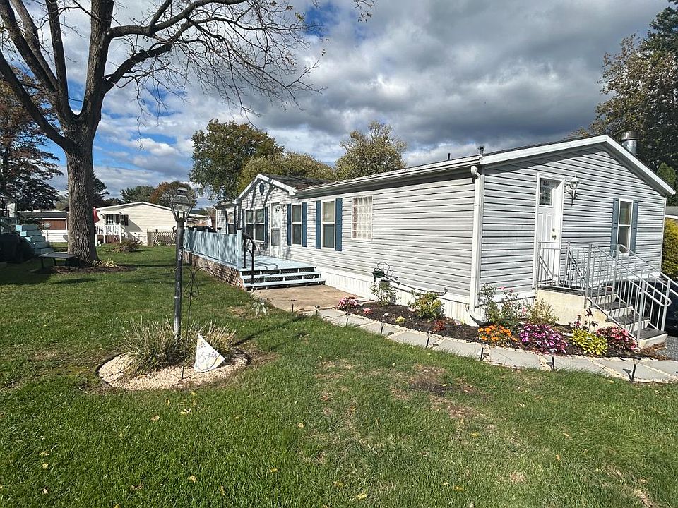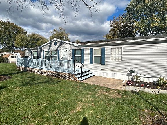 This meticulously maintained double-wide manufactured home, built in 2001, offers an impressive 1,512 sq. ft. of living space in the desirable Hampden Village MHP. The open floor plan seamlessly integrates the dining and living areas, enhanced by plush carpeting and a cozy electric fireplace, perfect for relaxation. The kitchen features modern appliances. The residence boasts three spacious bedrooms and two full bathrooms, including a luxurious soaking tub and a walk-in shower for ultimate comfort. Exterior highlights include a well-maintained deck, ideal for outdoor gatherings, and an asphalt driveway with ample parking for two vehicles. The property is in excellent condition, ensuring a move-in ready experience. Enjoy the benefits of community living with included sewer and trash services. This home presents an exceptional opportunity for those seeking quality and convenience in a vibrant community. The homes furnace was upgraded in July of 2023 along with cleaning the air ducts, deck was replaced in September of 2023, master bathroom bath was replaced in 2022, spare bathroom bath was redone in 2019 and home painted in 2023! This is a must see, book your showing today!!