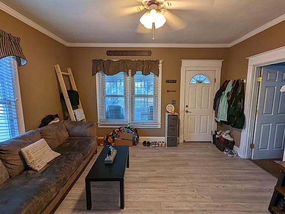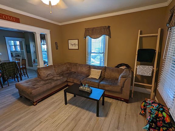 This home sits on a corner lot with a fenced in backyard. When you enter the home you will walk through and enclosed front porch. Entering into the living room you will see fresh grey laminate flooring throughout the room and the extra-large dining room. On your left, you will notice two well-maintained bedrooms. The home also has a large basement for storage. This is a can't miss home for under 100k.