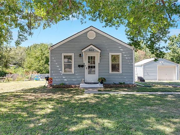 Welcome home to this adorable 2-bedroom, 1-bath ranch walking distance from all the shopping, schools, dining, and events that make downtown Blue Springs so special. Inside, you’ll find fresh paint and updated flooring thoughtfully sprinkled throughout, giving the home a light and inviting feel. The laundry room—conveniently located right off the bedrooms and bathroom— includes a built-in storm shelter for peace of mind during Missouri weather.