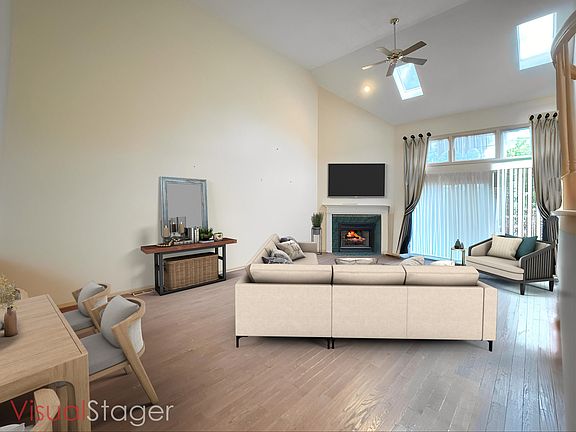 Welcome to Hickory Ridge-an unbeatable location near Randall Rd, Rt 20, I-90, Metra, top-rated restaurants, shopping, and Starbucks! This spacious, townhouse lives like a ranch with a sought-after first-floor primary suite featuring hardwood floors, a large walk-in closet, and a private bath with soaking tub, separate shower. The dramatic Living Room boasts soaring ceilings, skylights, and connects to the dining room. Sliding doors open to a large deck-perfect for entertaining or quiet evenings. The bright kitchen offers ample cabinetry, workspace, and a sunny eat-in nook. A welcoming foyer, covered front porch, and first-floor laundry with ceramic tile add convenience and charm. Upstairs, you'll find a spacious bedroom, full bath, and open loft ideal for an office, guest space, or reading nook. The full walk-out basement provides abundant storage, is roughed in for a future bath, and is ready to finish into your dream space. Complete with a two-car garage, nearby guest parking, and quality construction throughout, this home ready for its new owner to add their own touches to make this townhome truly exceptional!