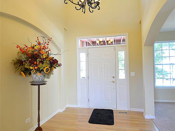 It's love at first sight when you see this incredibly beautiful and well-maintained two-story in Fisher Farms. Eye-catching curb appeal draws you in to the covered porch entry of this striking home. From the two-story foyer with hardwood floor you see elegant neutral décor and stunning architectural features of arched openings, niches, transom windows and openings, soaring windows flanking the fireplace in the two-story family room, and gleaming woodwork on the staircase with newel posts. High ceilings and bright windows make the living room and dining room feel warm and welcoming. The eat-in kitchen is open to the family room and features tile floor, granite countertops and backsplash, planning desk, center island, stainless steel appliances and access to the deck. Throughout the main and upper level of this luxury home you will find 6-panel doors, vaulted ceilings, and many extra touches you will love. A very special feature on the upper level is the master suite with walk-in closet, luxury bath, and private balcony. A full, unfinished basement offers great opportunity for the DIY project - maybe a man cave? This home has been well cared for and just perfect for the family. Move right in! You will love the location, too, near shopping, health and fitness facilities, excellent schools, the Metra and more!