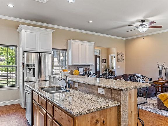 Welcome Home! Landscaping and masonry details make this property stand out in the neighborhood. Beautiful custom home on tree-lined street is ready for you to call home. This one checks all the boxes: white cabinets, granite countertops, open concept, split bedroom arrangement, garden tub, dual vanities, tiled shower, covered patio, large privacy fenced yard. Natural light floods every room through energy efficient windows. Tall ceilings enhance the open-concept and sense of spaciousness. Created for comfortable living and entertaining and move-in ready. 2022-09-01