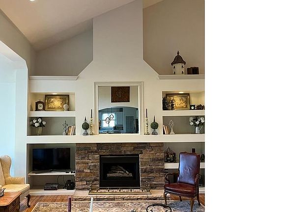 - Breakfast Bar, Kitchen Island, Custom Cabinetry, Granite Counters, Walk-In Pantry, Double Vanity, Separate Shower, Separate Dining, Bookcases, Center Hall Floorplan, Coffered Ceiling(s), Open Floorplan, Vaulted Ceiling(s), Bar, Two Story Entrance Foyer, High Speed Internet