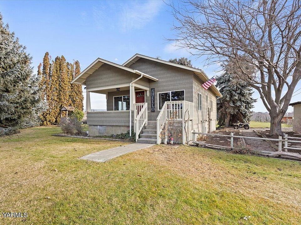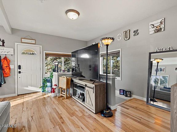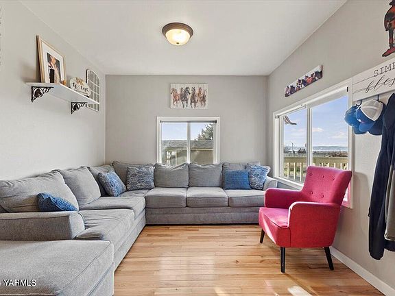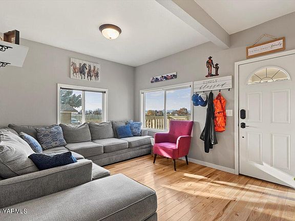 Perched up in the hills of Zillah, this 1,628 square foot home has a breathtaking view of Mount Adams, and more that must be seen in person to fully appreciate!Resting on just over 1.5 acres, your property has natural light pouring inside from its vinyl windows as soon as you walk through the front door from the covered front porch. You will observe shimmering bright hardwood floors, a spacious open-concept kitchen with white tile backsplash, a dining area, and under cabinet lighting. Your home continues with two living room areas, and a primary bedroom downstairs with a walk-in closet, double closets, and an en-suite bathroom.Step outside and take in your magnificent views in almost every direction once again while making your way along your beautiful and serene property. Additional features include a newer water softening system, newer pressure tank, an updated dual indoor HVAC system for both heat and air conditioning, large back patio, gardening areas, mature landscaping, RV/boat parking, a small outdoor shop/storage area, and more!