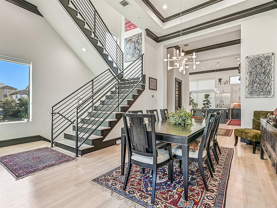Sleek and Contemporary meets Graceful Traditional with Dazzling views of the Houston Skyline in the Heart of The City. Come see this beautiful 4 story Montrose property with 15 foot ceilings, a timeless and tastefully designed interior, crowned by two walk out entertaining patios with panoramic views and your very own rooftop putting green. A nice sized guest suite opens to a serene and lovely cpvered patio and private backyard on the ground floor. Floor 2 Main Living gracefully adorned with wood shuttered windows that invite wonderful natural light. Thoughtfully designed with stacked closets for an elevator all the way to the fourth floor entertaining area and no steps in the interior space. 3rd Floor includes a large Primary Owner's Retreat with seating area and a built in coffee bar, along with a secondary bedroom with ensuite and a step out balcony. In all, a stunning home designed for both entertaining and quiet living, with access to all that beautiful Montrose has to offer!