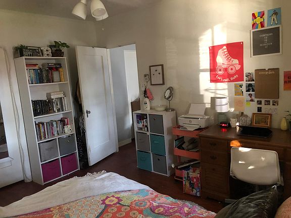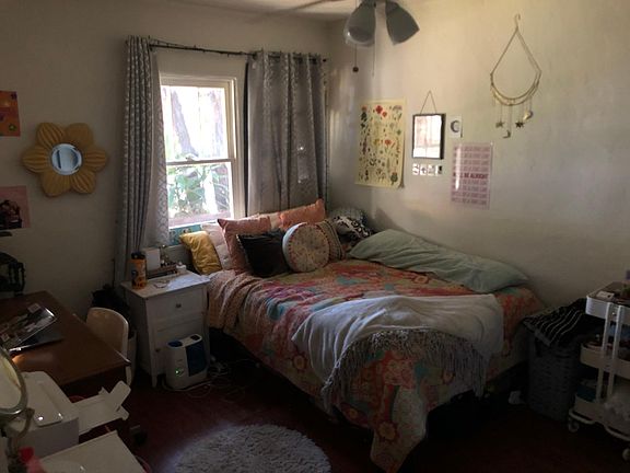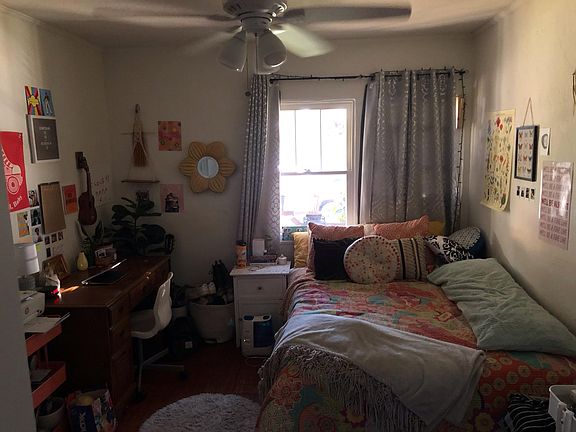 Spanish style duplex with Saltillo tile floors in kitchen and hardwood in bedrooms. Small front and back yard with detached one car garage. Laundry room with coin op washer and dryer. One year lease. Owner pays water, trash and gardner. Tenant pays electric and gas.