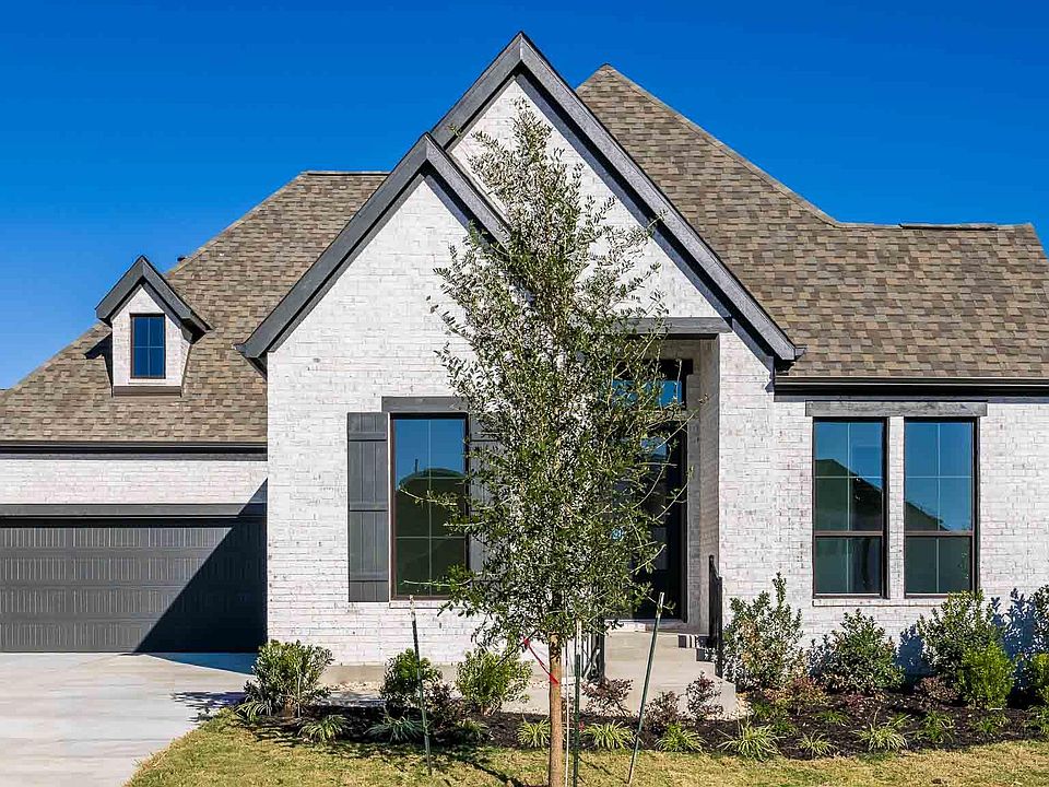 MOVE-IN READY! Step onto the front porch and into the elongated entryway with soaring 12-foot ceilings. French doors open into the private home office. Across the hall, the secondary bedrooms await, each boasting a walk-in closet and full bathroom. Continuing through the main living areas the dining area welcomes you with ample natural light. The adjacent family room features a striking wall of windows offers views of the outdoors. The kitchen boasts an island with built-in seating, 5-burner gas cooktop and a walk-in pantry, with convenient access to the covered backyard patio. The primary bedroom entrance is embraced by a wall of windows, providing a serene retreat for relaxation. The luxurious primary bathroom features dual vanities, a freestanding tub, a glass-enclosed shower, and two walk-in closets, ensuring ample storage. A guest suite, featuring a walk-in closet and full bathroom, is located off the main entry, offering comfort and privacy for visitors. The utility room, mudroom, and storage space are conveniently located off the three-car garage.