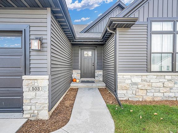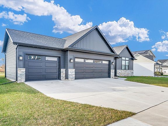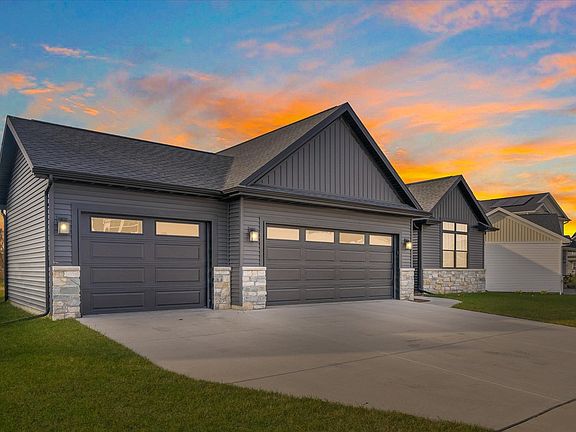 Newly built in 2023 this 3 bedroom, 2 bathroom ranch in Sangamon Fields subdivision is a must see! One of the most stunning and bold homes in the neighborhood with all black and stone exterior. This floor plan is super functional with a spacious drop zone right off the garage, open concept kitchen and living area and an oversized master suite with vaulted ceilings. The kitchen is tastefully done with a combination of classic white cabinetry and wood accents on the island. The ensuite offers dual vanity sinks with white marble tops and tile shower with glass doors. New bidets have been installed in both bathrooms.  Basement is studded out and ready to be finished, make it your own or use the builder's plans. Schedule your showing today!