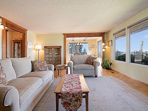 Stunning View Home in desirable neighborhood of Boulevard Bluffs close to Mukilteo! Large wrap-around deck of upper floor to admire the sound and entertain guests. Large open living space upstairs and down, both floors with Puget Sound Views. Beautiful rustic woodwork and exposed beams. Matching S/S appliances in the spacious kitchen with eating nook. Lovely outdoor space with raised beds, two water features and RV Parking. New roof in 2010, new H2O heater and Sump Pump in 2014. Move fast!!