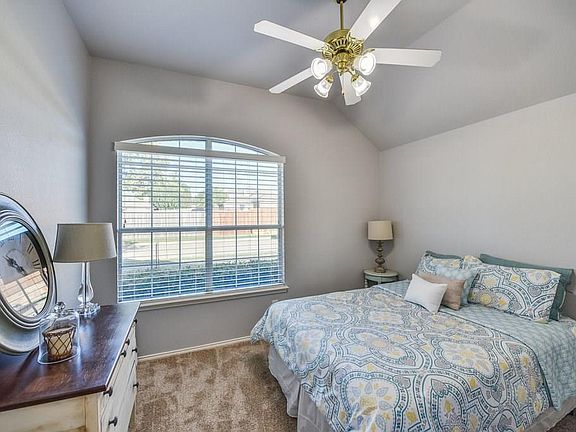 Beautiful home with an open floor plan light, and bright. Just off the entry is a bedroom with French doors that can also be used as an office or formal dining. The other secondary bedrooms and full bath are tucked away in a hallway creating privacy. The kitchen has a large breakfast bar island great for entertaining plus a desk area great for keeping everything organized. Just off the breakfast room is a covered patio that overlooks the only tree covered shady spot on the greenbelt. A storage shed for lawn equipment is a nice addition. The master suite is a relaxing oasis complete with garden tub and built in vanity.