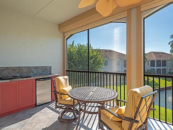 Beautifully Appointed Coach Home in The Reserve II at Banyan Woods Outstanding value for this spacious second-floor coach home, the largest floor plan in The Reserve II, offering 3 bedrooms plus an office, bonus/family room, and 3 full baths, perfectly blending comfort, function, and style. The inviting foyer greets you with a grand staircase and elegant wood flooring, while the private elevator provides effortless access to the main living area above. The open-concept layout features 10-foot ceilings that enhance the sense of space and light. The kitchen includes granite countertops, stainless-steel appliances, a wall oven, and a charming breakfast nook overlooking the lake. Recently painted throughout, the residence is move-in ready. The oversized screened lanai offers one of the most premium views in The Reserve II—overlooking the tranquil lake, fountain, and natural wildlife—and features a built-in electric grill for outdoor entertaining. The office showcases rich wood built-ins, while the expansive family/bonus room includes custom cabinetry, a refrigerator, and a wine cooler, making it an ideal space for gathering or relaxation. Each of the three bedrooms is generously sized with ample closet space. Additional highlights include electric hurricane shutters, abundant storage throughout, and a two-car garage with built-ins. Residents of The Reserve II enjoy a maintenance-free lifestyle with exterior maintenance included in the association dues. The community has recently updated roofs and exterior paint, with no outstanding special assessments. Amenities at Banyan Woods include a resort-style pool and spa, clubhouse, fitness center, playground, basketball court, and even a lined pickleball court. Ideally located at the corner of Airport-Pulling and Pine Ridge Roads, Banyan Woods offers quick access to fine dining, shopping, entertainment, and the world-famous white-sand beaches of Naples.