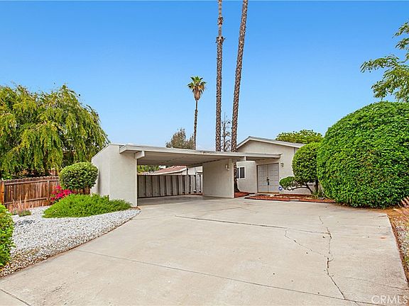 Welcome to "The Village" at Canyon Crest. Built in 1969, this home has a mid-century feel that fits in well with the surrounding Canyon Crest neighborhood. As you walk up the drive, the home's carport, palm trees, and mountain background give you a feeling of California living. Inside, the vaulted ceilings welcome you, making the home seem larger than it is. The living room has custom wood paneling, a sliding door to the expansive side yard, and plenty of natural light. In the great room, the open kitchen concept allows for family and friends to visit as meals are prepared. This room also has vaulted ceilings and a sliding door to the backyard. All of the windows and sliding doors in the home have been updated to dual pane, and the HVAC system is less than 10 years old. The bedrooms are spacious with plenty of natural light from the windows. The shared bathroom has access from both the hallway and the back bedroom. Heading outside, you'll notice that the north side of the home has a zero lot line which allows for a very spacious side yard off of the living room patio. The back patio is covered offering a shaded space to sit. Views of the Box Springs mountains over your back fence add to the appeal. In the yard, there are mature fruit trees which include Naval Orange, Valencia Orange, and Key Lime trees offering fresh fruit. This home is located at the end of the cul-de-sac and has a lovely public park next door. It is almost as though your front yard extends right into the park. A wonderful place to walk your dog or play with the kids.