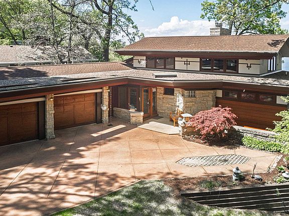 Exquisite Lake Mendota waterfront home with 3 bedroom, 3 baths and 90 ft of private shoreline. Frank Lloyd Wright-inspired design with limestone, cedar and expansive glass showcasing 5-mile panoramic views. Open floor plan with soaring 20' ceilings, perfect for entertaining. Outdoors features a level lakeside lawn, fire pit, gas grill, picnic area and 70' pier with 2 boat lifts. attached 2-car garage. Prime Spring Harbor location near schools, Hilldale, UW and downtown Madison.