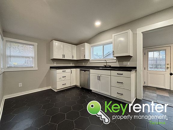 This Tacoma rental home features a fully finished basement, providing a clean and versatile extension of the living space. Important updates such as plumbing, vinyl windows, a brand new 90 percent efficient furnace, water heater, and sump pump offer peace of mind and long term comfort. Step outside to a spacious fully fenced backyard complete with a new composite deck and handrails along with a newly constructed landscape retaining wall. The detached garage and off-street parking add additional convenience.