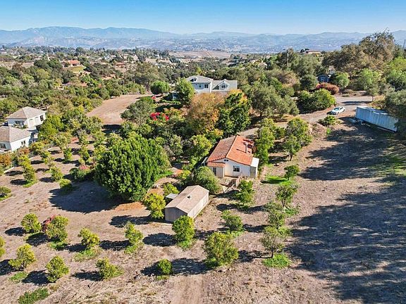Indulge in the possibilities of multi-residential living from this Spanish-inspired single-story estate with detached ADU, privately tucked away on an incredible 5.44-acre corner lot in the highly desirable Morro Hills area of Fallbrook. A long, easy-access driveway with additional parking welcomes you to this serene and versatile property that perfectly blends privacy, space, and potential. Step through the grand entry and admire the Hacienda-style architecture with crown molding and large Spanish tiles that flow seamlessly throughout the home and extend to the outdoor living spaces, creating a timeless blend of indoor and outdoor elegance. The formal dining room with tray ceiling and dry-bar pass-through to the kitchen creates an ideal space for entertaining, while the living room’s cozy fireplace sets the tone for relaxed evenings. The open-concept kitchen is the heart of the home—featuring a wrap-around bar counter, center island, granite countertops, stainless steel appliances, a 5-burner gas stove, and a large walk-in pantry. The kitchen flows effortlessly into the breakfast nook and living area, with direct access to the private fenced patio—an intimate retreat adorned with Spanish-tile patio and a covered awning. Privately situated in its own corner wing of the home, the primary suite is a true sanctuary. This spacious retreat offers tray ceilings, patio access through sliding glass doors, and a grand walk-in closet. The spa-inspired ensuite features dual sinks, a dedicated vanity area, soaking tub, and walk-in shower—creating the perfect space to unwind and indulge in luxury at day’s end. Additional highlights include a guest bath with bidet, dedicated laundry area, and an oversized two-car finished garage with a versatile bonus utility/flex room ideal for a studio, creative workspace, or home office. A true standout feature is the separate detached ADU—once the main home—situated on its own private section of the property, ensuring exceptional privacy. The ADU includes 2 bedrooms, a spacious living room with fireplace, kitchen, and bathroom, ready to update or reimagine as guest quarters, rental income, or multi-generational living. Outdoors, the land is a dream: fully irrigated and terraced with multiple graded pads, ideal for horses, gardens, or future expansion. The property is dotted with fruit trees—including lemon, lime, orange, and loquat—along with fragrant angel trumpets and RV hookups for ultimate convenience. This distinctive Morro Hills estate delivers an extraordinary opportunity to live, work, and expand in one of Fallbrook’s most picturesque and private settings.