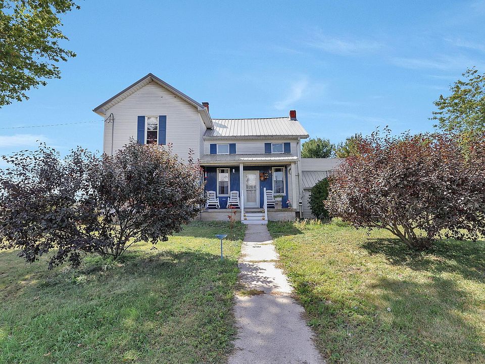 Well-maintained country home on 2.86 secluded acres surrounded by farmland. Full of charm, this home features natural woodwork, solid wood doors, crown molding, and original hardwood floors. The main floor offers a large dining room adjacent to the kitchen, a living room with exposed brick chimney, a bedroom currently used as an office, laundry room, and full bath. Upstairs you'll find the primary bedroom with two walk-in closets, a third bedroom, and an updated full bath. Hardwood floors are under the upstairs carpeted bedrooms. Relax on the covered porch or entertain on the spacious deck. Additional highlights include a forced-air fuel oil furnace, central air, newer metal roof, and replacement windows. Zero-turn mower, snow blower, and hot tub convey. A bank barn provides excellent storage for all your toys. Don't miss this one -- call today before it's gone!