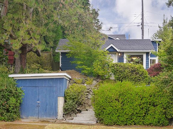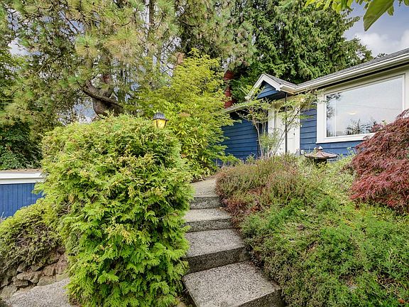 Charming cottage sits high above street for privacy, yet offers alley access, covered parking for 3 vehicles, shop space, private backyard and a separate, stylish, 250 s.f. GUESTHOUSE/STUDIO/HOME OFFICE with its own 3/4 bathroom. The main house (770 s.f.) is an inviting refuge w/open plan kitchen, dining & living rooms arranged for comfortable living. French doors open to a garden view bdrm. Newer roof, sewer, windows. Peek city winter view. Alaska Jct. retail & metro just a few blocks away.