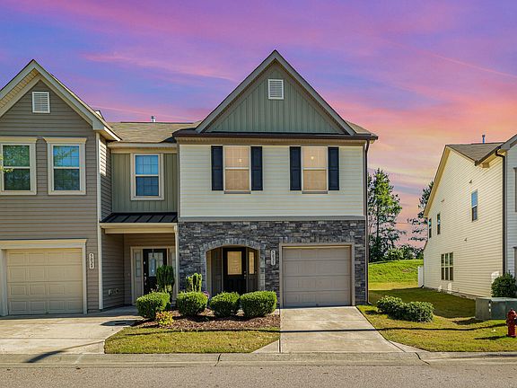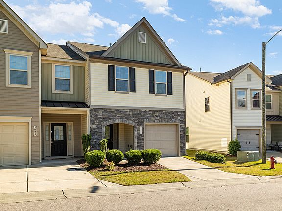 Discover this beautifully maintained 3-bedroom, 2.5-bathroom end-unit townhome, featuring a partial stone veneer exterior, a welcoming covered front porch, and a 1-car garage. The open-concept floor plan is bathed in natural sunlight, highlighting the spacious living room and dine-in kitchen. The kitchen boasts a raised bar-height island, stainless steel appliances, and a cozy dining area—perfect for both everyday living and entertaining! Retreat to the expansive primary suite, complete with a comfortable sitting area, a generous walk-in closet, and an en-suite bathroom featuring dual vanity sinks, a garden tub, and a separate walk-in shower. Two additional large guest bedrooms offer flexibility and can be utilized as a home office or workshop to accommodate remote work or study needs. A full hallway bathroom with a tub and shower combination and an upstairs laundry room add to the home's convenience. Step outside to a private, airy, and level backyard oasis, complete with a relaxing patio, a storage closet, and a partition fence offering serene tree-lined views. Enjoy community amenities including a refreshing pool. With easy access to I-440 and about a 10-minute drive to downtown Raleigh, Walnut Creek Music Park, and the sports complex, this home offers both tranquility and connectivity. Whether you're seeking a primary residence or a rental investment opportunity, this property is a must-see! Schedule your private tour today and experience the perfect blend of comfort, versatility, and convenience!