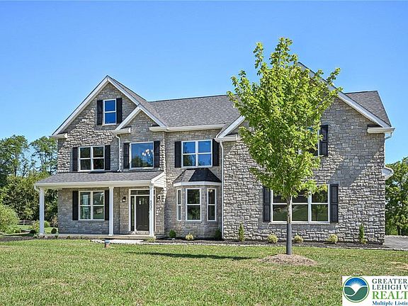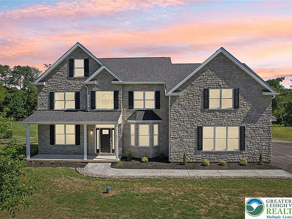 Welcome to your dream home in Stone Ridge Estates, offering brand-new construction without the wait, nestled on 2.3 acres on a quiet cul-de-sac. Enter into a grand 2-story foyer to be greeted with OAK WOOD FLOORING, soaring 9-FOOT CEILINGS, recessed lighting, and exquisite custom trim work including crown molding, chair rail and wainscoting. A formal living room flows through French doors into a cozy family room, anchored by a stone-faced FIREPLACE. The eat-in kitchen showcases an island, a pantry, granite countertops, and direct access to the 12x32 deck, complete with lighted posts and a ramp leading to the driveway. A formal dining room, half bath and access to an oversized 35x24 3-car garage complete the main level. Upstairs, you’ll find 4 huge secondary bedrooms, each outfitted with ceiling fans, sharing a full hall bath with a skylight. Conveniently situated is a laundry room that then leads to the MASSIVE PRIMARY SUITE boasting oak wood floors, vaulted ceilings and 3 WALK-IN CLOSETS. The luxurious ensuite features a dual vanity, soaking tub, large open shower, separate dressing area and skylight. The 3rd level offers a huge BONUS ROOM, ideal as a 6th bedroom, home office or rec room, with its own full bath. The full basement walks-out to the spacious 32x24 patio and is ready for your finishing touches already plumbed for a full bath and designed for a future wine cellar. This is more than just a home, it's your opportunity to enjoy luxury and space in a prime location.