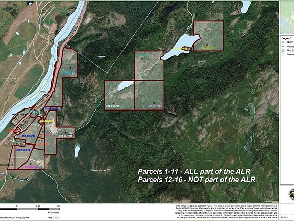 16 titles totaling approximately 1221 acres located in Pritchard. Seller will only sell as packaged together single transaction. This property has a private gravel pit, an easement rented that allows access for a secondary ministry gravel pit, leasing land for horse pasture, timber that has been selectively logged and one existing residential tenancy. Includes 3 lakefront titles on 2 separate lakes, one title is riverfront and others have highway frontage. Most titles near the highway are in the ALR. 1/4 sections near Harper Lake are not in ALR. GST applies. Water rights, easements to neighbours and all title charges to be reviewed and approved by any buyer. Address frontages on Willow/ Poplar/ Trans Canada HWY. The lower acreages add up to approx 571.975 acres Harper/ Lakes titles 649.357 acres. AF1, see docs. Individual lots are not available for sale.