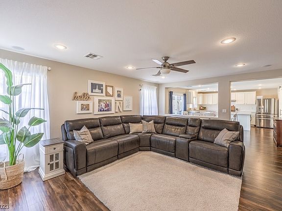 STUNNING, IMMACULATE 4 BR 2.5 BATH W/ POOL & SPA - END OF CUL-DE-SAC W/ RV PARKING IN DESIRABLE IRON MOUNTAIN COMMUNITY!! Remodeled Kitchen & Baths, Large Loft, LVP Flooring, 2 Car Garage, Great Room w/ Office & Work Out Room. KITCHEN: White Cabinets w/ Pulls, Gorgeous Quartz Countertops w/ 2.25 Inch Edge, White Subway Tile Backsplash, SS Appliances Huge Island, Massive Pantry & Open to Family Rm. PRIMARY SUITE: LARGE BR, Double Doors, New Custom Walk In Closet w/ Lighting, Remodeled Bath with HUGE Walk in Shower, Double Sinks, Separate Commode. YARD: Gorgeous Salt Water Pool & Spa w/ Waterfall, Pool has Swim-in-place Jets for Exercise, Pavestone Patio Area, RV Parking on side of the house w/ 9 FT Gate & BBQ Stub Out. COMMUNITY: Master Plan of Iron Mountain Ranch, Parks and Pet Parks. Close to Nellis & Creech AFB, 215, Shopping & great Schools!