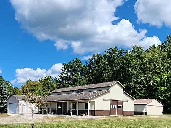 Horse barn with tack room, wash area, hayloft, large stalls with auto water drinkers and room to add additional stalls. Already fenced in pasture, flat riding area and wooded trail ideal for pleasure riding or training. If you enjoy a different kind of horse power you can take a walk through the woods or ride your RTVs. This property has pienty of room with a second large high ceiling building with cement floors to work on any hobby you enjoy. Lots of space to store your boat, cars, ATVs,RV or equipment. A third build with cement floors to store tractors or two more cars. There's extensive parking areas for trailers, horse trailers or to have all your friends and family over.