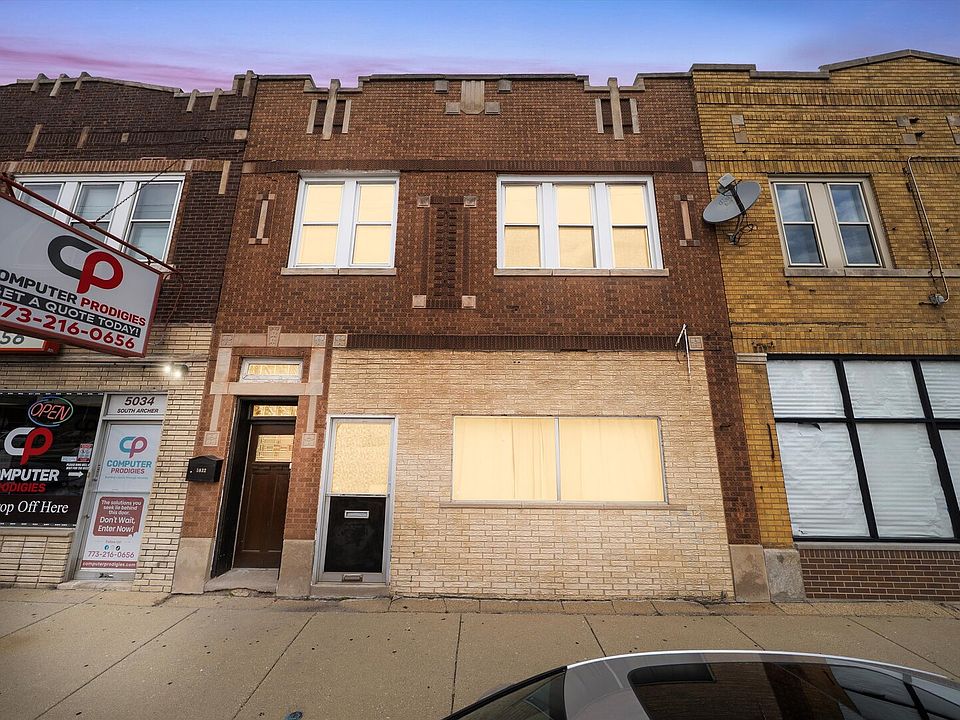Amazing brick two unit property with store front possibility. Property located in the great neighborhood of Archer Heights. A beautiful modern second floor with a living room, formal dining room, three bedrooms, and a den/office. Office connects you to a new rooftop patio with amazing views of the city ready for entertaining. Kitchen includes brand new white cabinets, quartz countertops, and stainless steel appliances. Freshly polished hardwood flooring throughout including the bedrooms. Sought after In unit laundry. Central heating and air conditioning ready for those cold and hot days. This second floor unit is completly move in ready. As for the first floor unit you walk into the living area that has a fireplace, exposed brick, and high ceilings. Large chef style Kithcen with and Island and Viking applicanes. Kithcen connects to the extended attached garage. Unfinished basement can also be accesed through the same kitchen. There is and endless amont of possibilites for mixed use or residntial use on this floor. Surprising feature is the 4 car garage with a 14X22 entrance door, perfect for any oversized vehicles. Exterior of the property includes new roofing installed 2025. This is a must see property to truly appreciate the potential. Within walking distance of Curie High School, Chicago Public Library, shopping, Orange Line and minutes away from the expressway and Midway Airport.