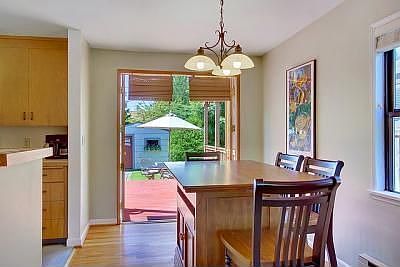 Charming Cape Cod beautifully maintained on a quiet street. Warm colors, hardwood flrs, manteled fireplace, dining room with french doors to large deck. Spacious kitchen open to dining room w/ plenty of cabinets. Large bedrooms, remodeled bath w/ vaulted ceiling, wainscotting, skylight, and custom tile. Park like yd, fenced. Detached garage with alley access, offstreet parking and storage shed. Excellent condition with newer roof. Walk to the Junction restaurants, shops, and farmers market