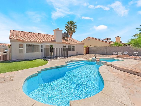 Experience resort-style living in this beautifully upgraded 3-bedroom, 2-bath home located in the heart of NW Las Vegas. The backyard is an entertainer's dream and your own private oasis, featuring a large heated pool & spa, a brick paver patio area, firepit with seating area, and low-maintenance desert landscaping and artificial turfall set on an oversized lot. The interior features a bright, spacious living area that flows seamlessly into the dining space and kitchen, ideal for gatherings. Enjoy an open-concept layout with high-end vinyl plank flooring, new plush carpet, and fresh two-tone paint throughout. The large primary suite offers a luxurious escape with a custom shower adorned with luxury designer tile and stone. Additional highlights include stainless steel appliances, gated RV parking area, newer HVAC system, 2-car garage with storage. Prime location near shopping, dining, parks, and freeway access. This turnkey home combines comfort, style, and conveniencedon't miss it!