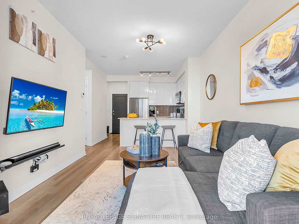 Welcome to this stunning 1 Bedroom + Den suite at Amber Condos by Pinnacle Uptown perfectly nestled in the heart of Mississauga's vibrant Uptown community. This contemporary residence showcases breathtaking, unobstructed southwest views through floor-to-ceiling windows that fill the home with abundant natural light. The spacious open-concept layout is enhanced by 9-foot ceilings and sleek laminate flooring throughout. The modern kitchen features stainless steel appliances, elegant quartz countertops, and ample cabinetry - ideal for those who love to cook and entertain. The versatile den offers the perfect space for a home office, reading nook, or creative studio. The bright primary bedroom includes a well-designed closet for generous storage. Enjoy added convenience with a dedicated parking space and a storage locker. Located just steps from Square One, top restaurants, banks, and public transit, with easy access to Highways 403, 407, and 401 - this exceptional suite blends modern luxury with urban convenience.