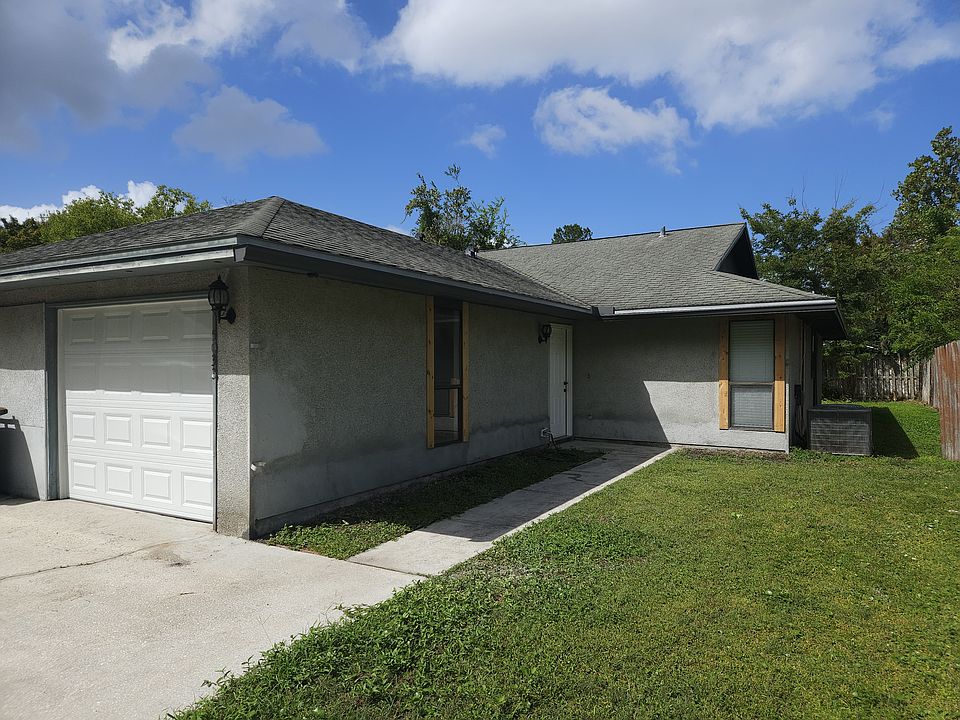 This beautiful, freshly painted home is situated on a quiet cul-de-sac, just minutes from NAS/JAX and offering easy access to I-295. The fully fenced backyard is your private slice of sunshine. HVAC updated in 2023, the house includes a new full-size fridge and a new garage door with keypad, the new cordless 2 Inch faux wood blinds protect windows by providing privacy, a washer and dryer are included and are complimentary from the owner