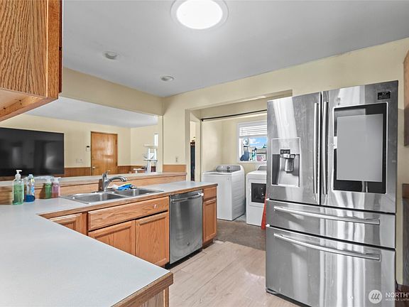 Investor alert! This spacious 3 bed, 2.5 bath rambler sits on a generous ¼-acre lot at the end of a quiet dead-end street in NE Tacoma—perched on a bluff with peek views overlooking the city. This home offers incredible potential as a blank canvas. The layout is ideal: a formal living room with gas fireplace, a dining room, an open kitchen that flows into the family room, and a massive rec room that could easily be converted back to a 2-car garage. Outside you’ll find two separate shop structures, a patio, and a huge backyard ready to be reimagined. Newer metal roof already in place. Don't miss out on this amazing opportunity in Browns Point.