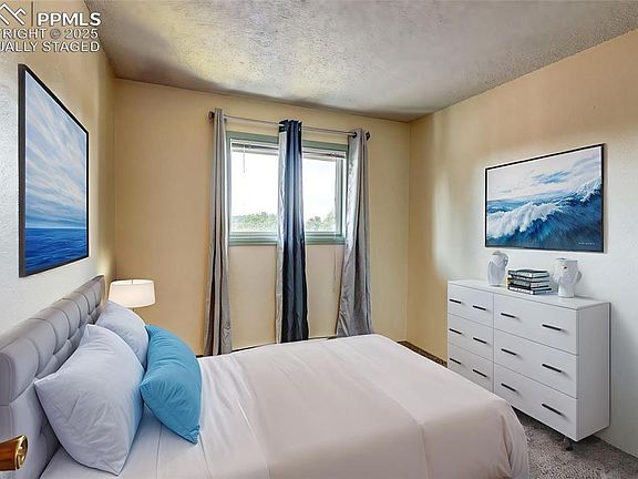 Perched on the top floor, this charming condominium offers sweeping views of Pikes Peak—making it a true standout in the building. This home features two bedrooms and one full bathroom with two sinks. Step onto the open deck and soak in the mountain views all year long. Inside, the kitchen includes all the appliances: refrigerator, stove, dishwasher and disposal. You'll find updated, easy-care wood laminate flooring that adds warmth and durability to the living and dining spaces. A wall-mounted air conditioning unit ensures cool comfort with modern efficiency. For storage needs, there are both an interior and exterior closet—plus, the larger one inside offers potential to be converted into a private laundry area. The community also provides a shared laundry room. Additional perks include an assigned parking space, access to the community pool and green space, and the peace of mind that comes with an HOA fee covering all utilities except stormwater. This is your opportunity to own an affordable mountain-view retreat in a well-kept and welcoming community. The location close to the intersection of Union and Academy offer a short commute to all parts Colorado Springs and surrounding areas. Enjoy the convenience of walking to nearby shopping and dining.