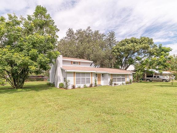 One or more photo(s) has been virtually staged. In downtown Zephyrhills this 1950 built (Brady Bunch House) has been completely renovated this year. It's expansive three bedrooms two baths has 1,900+ square feet of living area and a 24'x20' garage. The huge living room has real hardwood floors and a wood burning fireplace. The sitting room or sun room also has hardwood floors. Throughout the house are custom window treatments. The kitchen has brand new cabinets, granite counter tops, tile backsplash, new stainless steal range, dishwasher and microwave. New garbage disposal with new steel farmers sink with Delta faucet. The bathrooms have new vanities, new tubs with new tile, new toilets and Delta fixtures. The Master bathroom has a cool custom built barn door leading to it. This home has a new roof, new plumbing, new water heater and new 150 amp electric panel. It has premium lighting throughout and remote controlled ceiling fans in all bedrooms. The home has been freshly painted inside and out with Benjamin Moore paint. The big lot is 125'x140' and you enter the rear entry garage from the alley way behind home. Out back in the yard shaded by mature oaks is a brick patio where you can enjoy the sunsets. The location of this home puts you 1 mile to a public golf course 2 miles to Sam Pasco Park, 3 blocks to Zephyrhills Depot Park and two blocks to a walking trail. You can walk downtown to see the occasional parade, eat out or shop.