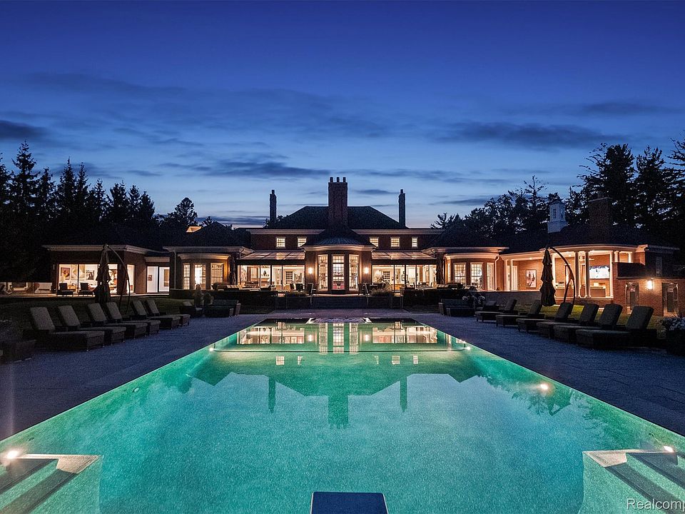 Poised on nearly four private acres in Bloomfield Hills, this fifteen thousand square foot masterpiece blends extraordinary indoor amenities with resort-caliber outdoor features, creating a true lifestyle sanctuary. Upon entry, the dramatic marble foyer and staircase, soaring ceilings and remarkable architectural detail, set the tone for the home’s rare pedigree. Elegant formal living and dining rooms flow into expansive everyday spaces, bathed in natural light, designed for both scale and comfort. At the heart of the home lies a spectacular commercial style stainless-steel kitchen with walk-in refrigerator/freezer and dual prep areas, paired perfectly with Crystallo onyx counters seamlessly blends elegance and function. Access to terraces and outdoor entertaining spaces adjoin gathering areas to encourage a natural flow, perfect for hosting a crowd or enjoying quiet moments. The first floor primary suite is a private retreat with morning bar, two oversized walk-in closets, spa-inspired bathroom and separate sitting area. A stately home office offers dedicated space for productivity, while multiple living and dining areas balance function and sophistication. The lower level transforms into a private club with unmatched amenities for recreation including a ventilated cigar room, grand scale wine room, stadium style theater room, full fitness center, barber room and fully outfitted second kitchen with custom dish pantry. Outside, a sparkling pool with bath cabanas and full outdoor kitchen invites summer entertaining, while a professional-grade tennis court offers endless recreation. Mature landscaping frames the grounds with beauty and seclusion. A four-car attached heated garage, expansive driveway and thoughtful lot design further elevate the property, while high-end updates ensure timeless style and finish. This is more than a home—it’s an estate of rare distinction, offering privacy, scale and world-class amenities in one of Bloomfield Hills most coveted settings