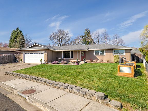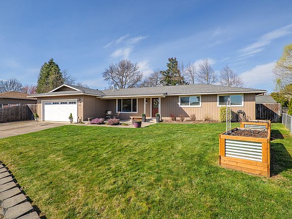 This beautifully maintained 4-bed, 2-bath offers the perfect blend of comfort, convenience New roof last summer and recently updated with fresh exterior paint. Inside, you'll find a spacious layout featuring a separate living room, ideal for a quiet retreat or extra family space—along with a welcoming great room anchored by a rock fireplace. Step outside to your private oasis, complete with an inviting in-ground pool, perfect for summer gatherings. The fully fenced backyard ensures privacy and security, while irrigated garden beds and a drip system make gardening a breeze. Need extra space? A finished shed with heating and air conditioning provides endless possibilities—whether it's a home office, studio, or workshop. Located on a quiet side street within walking distance to Scenic Middle School and Crater High School. Don't miss your chance to make it yours. schedule a showing today. Owner is a licensed RE agent in Oregon.