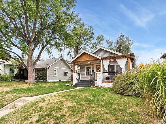 Welcome to this beautifully updated home in one of Denver’s most desirable neighborhoods! Located just blocks away from Regis University and all of the wonderful shopping and dining experiences that the highlands has to offer. Recent updates include a new furnace, air conditioner and hot water heater in 2022. New kitchen appliances and washer dryer in 2023. New roof, siding and gutters in 2017. Original hardwood floors welcome you as you step through the front door, leading to the open kitchen with exposed brick, stainless steel appliances and seating at the kitchen bar. You will love the expanded owners bedroom, with two large closets. The spacious remodeled bathroom features dual floating sinks and gorgeous tile work throughout. Laundry is conveniently located on the main level. The basement has room for loads of storage, or an extra office space if needed. Step outside to the large deck and beautiful flagstone patio underneath a shady willow tree that is absolutely lovely all summer long. The thoughtfully landscaped backyard is abundant with grapes, blackberries and strawberries, and ready for your spring planting to make a lush oasis for summer entertaining. An extra bonus is an amazing sunroom off of the back of the garage. Great extra space for watching some baseball or relaxing with your favorite book. This is the one you've been waiting for!