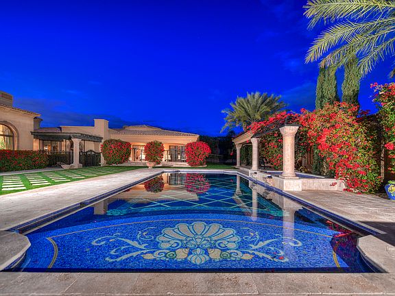 On the doorstep of Camelback Mountain, nestled away on a private 2-acre estate, is a stunning 15,000 sq ft masterpiece. When you enter the hand-forged iron gates, you'll notice a unique level of privacy and seclusion. The architect's attention to detail is superb with a timeless, elegant design. Retreat to the master wing to discover a domed indoor spa, salon, and private gym. For entertaining and relaxation, you can play in the billiards room, private movie theater, and wine cellar. Experience the ultimate indoor-outdoor Arizona lifestyle with the sparkling mosaic pool, outdoor kitchen, pool house, and separate guest quarters. You'll enjoy the best of both worlds: your own private sanctuary amidst the finest shops and restaurants in Paradise Valley. Contact us today for your private tour! 5035 N Invergordon Road ; Paradise Valley, AZ 8525315,302 sq ft masterpiece with superb architecture and designPrivate 2.23-acre estateLuxurious location in Paradise Valley, nestled on the doorstep of Camelback Mountain7 bedrooms ; 9 full baths ; 3 half bath s ; 7-car garage spaces+ Exceptional detail and craftsmanship of the prestigious builder, Nance Construction, this magnificent estate offers unrivaled luxury and comfort+ Lushly landscaped, complemented by beautiful trees and shrubs, a manicured lawn, and exquisite outdoor living spaces+ Enjoy the ultimate outdoor Arizona lifestyle with breathtaking views of Camelback Mountain from the front patios and accordion doors, or retreat to your exquisitely designed mosaic pool in the private backyard+ Enjoy the best of both worlds: your own private sanctuary amidst the finest shops, restaurants, and resorts in Paradise ValleyThe Residence+ Hand-carved stone surround entry with hand-forged iron gate into courtyard and front door, the foyer boasts imported stone flooring with inlaid decorative marble detail and 9" carved Macedonian, travertine baseboards, massive dome ceiling with Naos Forge custom chandelier and hand plastered walls+ Stunning details abound throughout the living spaces featuring 9" carved Macedonian Travertine baseboards, hand-plastered walls and ceilings, hand-hewn walnut floors, custom artistry, and dazzling scenic views through large picture windows and French doors+ Prepare culinary delights in the Chef's kitchen with Viking appliances, massive hand-carved limestone hood over range Franke pot-filler, built-in Miele Espresso coffee system, center island with seating for five, large walk-in pantry, hand-hewn walnut floors+ Retreat to the Master wing that looks out to the pool and offers hand-carved stone fireplace with built-in 50" Pioneer HD Plasma television, custom closets with custom cabinet fronts, master bath is beautiful European bath with dome and chandelier overhead, tub looks out to private courtyard and fireplace, wood trellis and garden and citrus grove, steam dual shower with stone tile, door that enters indoor spa+ Luxuriate in the Indoor Spa featuring the inground 6-8 person spa with beautiful dome overhead with custom Arte de Mexico iron and crystal chandelier, professional salon shampoo bowl, reclining station, carved gilded custom mirror with built-in Broadway lights+ Unwind or entertain in the private theater, wine room, or billiard room. The theater features a 137" screen with projection built-in to ceiling, state of the art sound system and theater equipment, seating for 10-18, velvet upholstered walls and custom electric theater seats. Temperature controlled storage for more than 2000 bottles of wine leading to the wine tasting room.+ Bask in the serenity or charm friends and family in the exquisite outdoor pool, pool ramada highlighted by hand-carved stone fireplace, undercounter beverage center and icemaker, and pool full bath.+ Entertain with culinary delights in the outdoor kitchen with the 53" Viking BBQ with sear zone and double side burners, Sub Zero beverage center and undercounter icemakerSchedule your private showing today!
