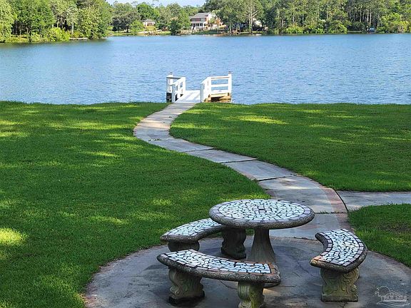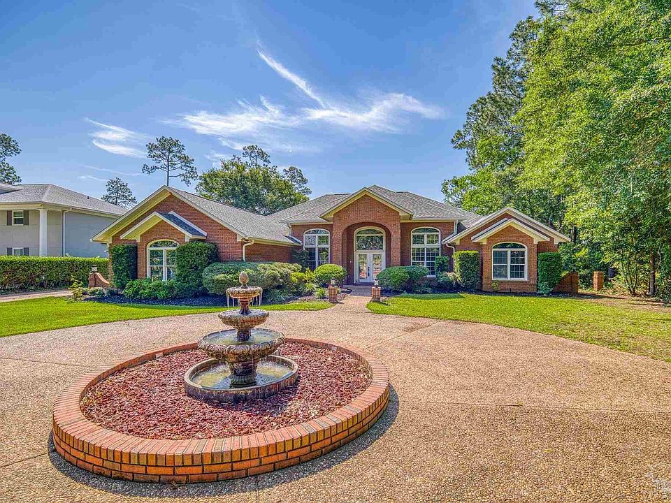 **WATERFRONT PARADISE** This completely custom and newly remodeled lakeside estate in Woodbine Springs Plantation is a must see! Upon entering the home, you cannot help but admire the soaring 14' ceilings trimmed in exquisite dentil crown molding while also noting the expansive views from the lake from the wall of new safety minded glass doors (doors all feature special locking mechanism to help protect against children or pets from exiting to the lake unexpectedly.) The flooring in the main areas is custom inlaid stone, stunning real black walnut wood flooring in kitchen, owners suite (overlooking the lake), and inlaid as a feature with the stone in the other lakeside bedroom which features its own glass doors to take in the views. Brand new carpet in the 2 other bedrooms-one of which features a private full bathroom for a perfect guest suite. The two bedrooms on the right side of the home share a jack and jill bathroom with private vanities. The kitchen also features an amazing brick archway which leads to a butler's pantry/wine and coffee bar area (you decide!). Boasting 4 spacious bedrooms, and 3 1/2 baths, large open kitchen overlooking the large vaulted ceiling family room, and luxurious spa baths, this home is loaded with gorgeous details. The entire home was remodeled-top to bottom in 2022! New roof, new electrical, new HVAC, new water heater, new appliances, new cabinetry, new fixtures, new dock over the lake, new deck off the huge back porch. Additionally in 2023 garage was remodeled and painted, new portable storage building, New hand rails installed and painted as well as the Dock. Sprinkler System and Fountain updated in 2024. 16k for new gutters and leaf filter system 2023. This is a palace fit for Royalty. Make it yours TODAY!