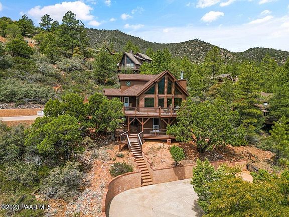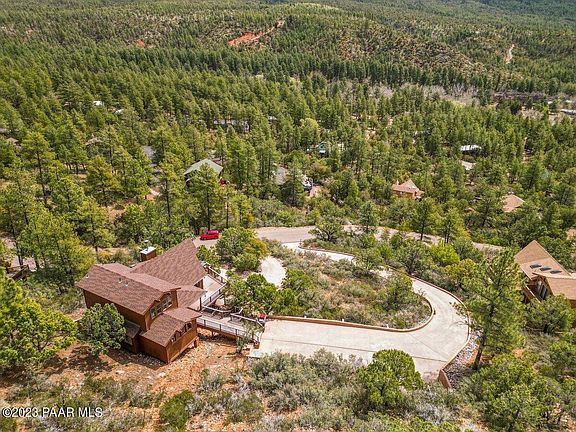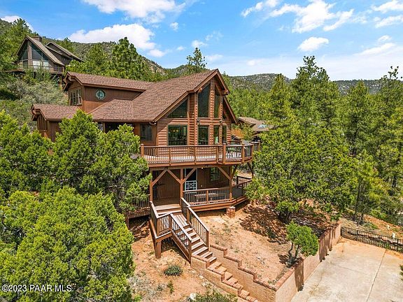 Beautiful mountain retreat! This charming home is nestled in the heart of Pine, AZ and boasts stunning views of the surrounding forest. Enjoy the tranquility of nature on the oversized deck or take a stroll through the nearby hiking trails. Inside, you'll find a spacious living area with vaulted ceilings, a cozy fireplace, and large windows that flood the room with natural light. The primary bedroom has its own access to the deck with breathtaking views, and an ensuite bathroom. Two additional bedrooms, a full bath and a small loft complete the upstairs living space. The lower level includes a Mother in law suite with separate entrance from main home as well as a full bath and ample storage.