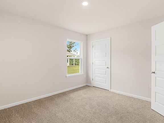 Both the kitchen and bathrooms include durable granite counter tops and elegant white cabinetry. The EVP flooring extends throughout the home and soft carpet in the bedrooms. Like all homes in Titus Park, the Jemison is equipped with Smart Home technology and stainless-steel appliances, including a smooth top range, microwave, and dishwasher.
