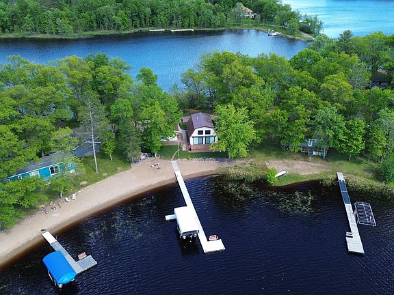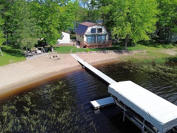 This very cute year round cabin boasts 100' of beautiful sand beach on sought after Big Sandy Lake. A West facing cabin offering million $$$ sunsets and the back side has another 100' of shoreline offering beautiful sunrise views, you get the best of both worlds! You will love the level lot, no stairs to get to the beach!! The open kitchen/living/dining area has great lakeside views and dual patio doors leading you out to the lakeside deck offering a remote awning for those days you want to shed the sun or rain. This home offers maintenance free siding and steel roof, maintenance free means more time to enjoy the lake! The detached garage has a great storage area for the lake toys, tools, mowers, paddle boards and more. Enjoy the lakefront fire pit, it's the perfect place to unwind with the sound of the loons and the fresh taste of s'mores. Not to mention, the back yard is actually front row to the July 4th fireworks over the lake. Plus this cabin comes fully furnished and ready for a new owner to enjoy. This is a great place to start your lake home memories!!