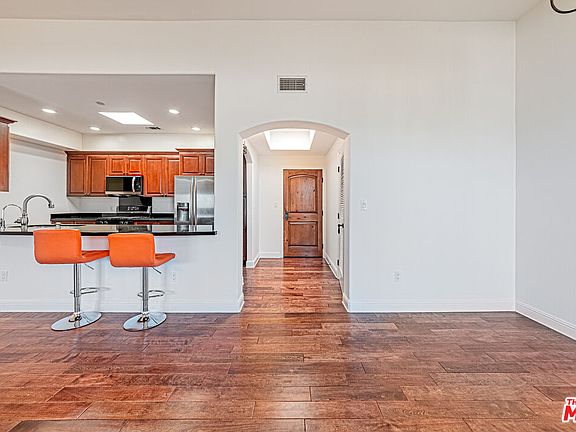 Stunning top-floor 2bed/2bath Spanish-style condo built in 2008!! Located near Hancock Park & Larchmont Village, this turnkey home features an open floor plan, soaring ceilings, and abundant natural light. The chef's kitchen offers a skylight, granite counters, and stainless steel appliances, flowing into the dining and living areas with a private balcony and cozy fireplace. The spacious master suite includes a walk-in closet, two extra wardrobes, and a luxurious bath with soaking tub. Additional highlights: rustic maple hardwood floors, in-unit laundry, and secured 2-car parking with guest spaces. Meticulously maintained in a quality building. HOA covers water, trash, landscaping & common areas. Don't miss this rare opportunity-this condo will not last!