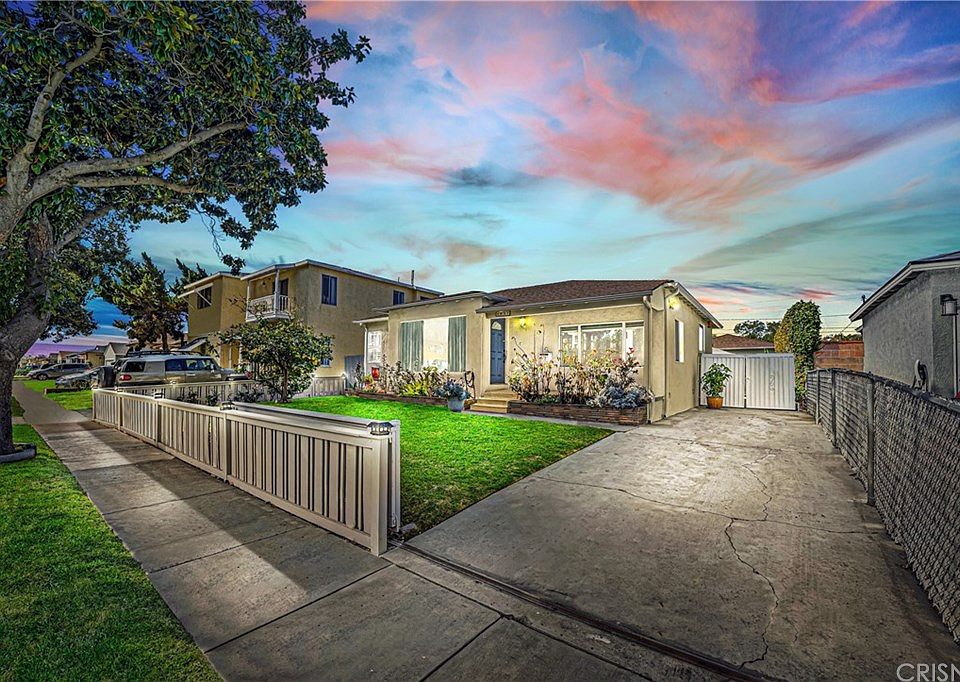 Contemporary Home in Lakewood! Youâll be impressed as you drive up tree-lined Verdura Ave for the first time and find a gate, leading you by a lemon tree and rose bushes to a charming blue door welcoming you home. Inside, a spacious and bright 4 bed, 3 bath home spanning approximately 1,826 sqft greets you as a large living area engulfed by natural light from the almost floor-to-ceiling windows shines over light tile floors and recessed lighting. A dining room leads you toward the rear of the home where a second living area opens up to a well-equipped kitchen with a breakfast bar, stainless steel appliances, overhead range, and sliding glass doors beckoning you to an outdoor patio perfect for Al Fresco dining and entertaining. Down the hall, four spacious bedrooms provide ample space for a growing family and the huge master bedroom features a fireplace nestled in a beautiful mantle, a large closet, and a recently remodeled en suite bath with wood laminate floors and dual vanities. In the popular downtown civic area in the heart of Lakewood and close to great shopping and dining at the new Long Beach Exchange and Lakewood Center Mall, this contemporary Lakewood home is a must see!Please note, there are two chandeliers that are excluded from the save. One is in the living and the other chandelier is in the dining room.