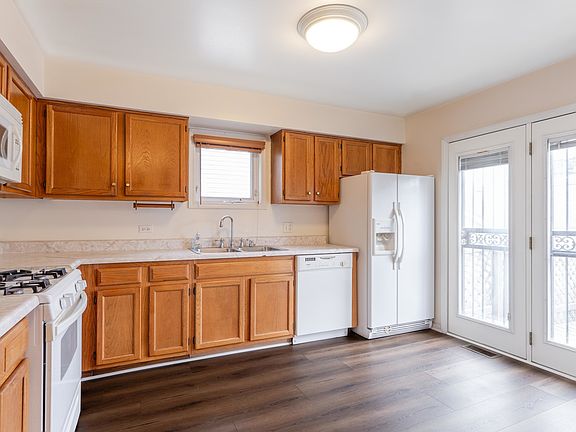 Located in South Austin, this 3-bedroom, 2-bath home offers a spacious layout and excellent location. The main level now features brand-new vinyl plank flooring throughout, a large eat-in kitchen with generous cabinet and counter space, direct access to a deck and fenced backyard, and a convenient first-floor full bathroom. A dedicated first-floor laundry closet and an entryway coat closet add to the home's functionality. Upstairs, the master bedroom features a large closet, and the second floor has been updated with new carpet and vinyl plank flooring in the bathroom. The finished basement offers a family room with brand-new carpeting, along with a versatile space that could serve as a home office, storage room, or additional living area. A detached 2-car garage, built in 2004, completes the exterior. The property sits on a quiet block just minutes from I-290, providing quick access to downtown Chicago and surrounding suburbs. Public transportation is nearby, and beautiful Columbus Park is only a short distance away. This home is sold as-is.